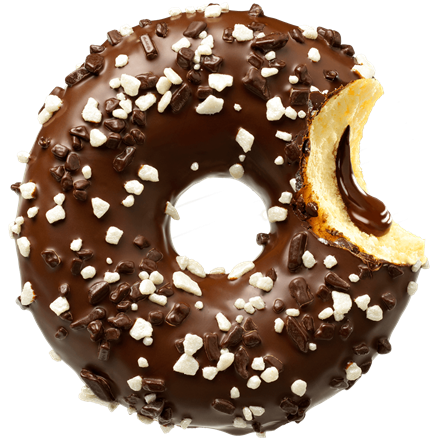 Huuuge donut. Teeny-tiny country! A luxuriously dark delight proud of its sweet marzipan crunch, crispy choco drops and authentic Belgian chocolate glazing. It's even filled with choco! Anyone got a map?