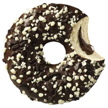 Huuuge donut. Teeny-tiny country! A luxuriously dark delight, proud of its white chocolate flakes, indulgent choco chunks and authentic Belgian chocolate glazing. It’s even filled with REAL BELGIAN CHOCOLATE! Anyone got a map?