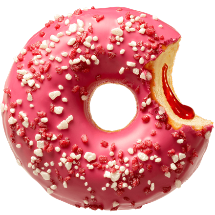 Kívül édes epres mázzal bevont, belül felséges eperlekvárral gazdagon töltött fánkcsoda. Hogy miért nevezik e finomságot Berry White-nak is? Ezt a nevet minden bizonnyal a tetejére szórt puha marcipán- és ízesített cukordarabkáknak köszönheti.